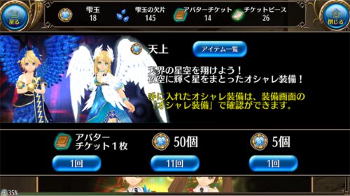 前回と同じタイトルかな? って思うかもですが少し違います( *¯ ꒳¯*) もうすぐオシャレ装備の 天上が販売終了しちゃう〜!(*´・ω・) 前に白い羽は当たったけど 青い羽も欲しかったなぁ♪ (ㅅ´ ˘ `) せっかく確定抽選なので 14枚あるアバターチケットを使ってみ…